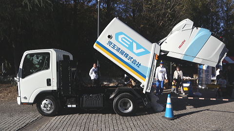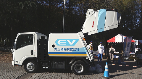 また、今回設置しました「EVパッカー車」は今年12月に、埼玉県の収集委託業者として初めて弊社が導入する量産型BEV(バッテリー電気自動車)です。2年前には同じ産業フェスタでISUZUさまのご協力のもと「EVトラック」を展示しましたが、この2年で「はたらくEV」も多用途化、高性能化が進みました。皆さまのお近くでこの静かなEVパッカー車が動き出すのも、もうすぐです。